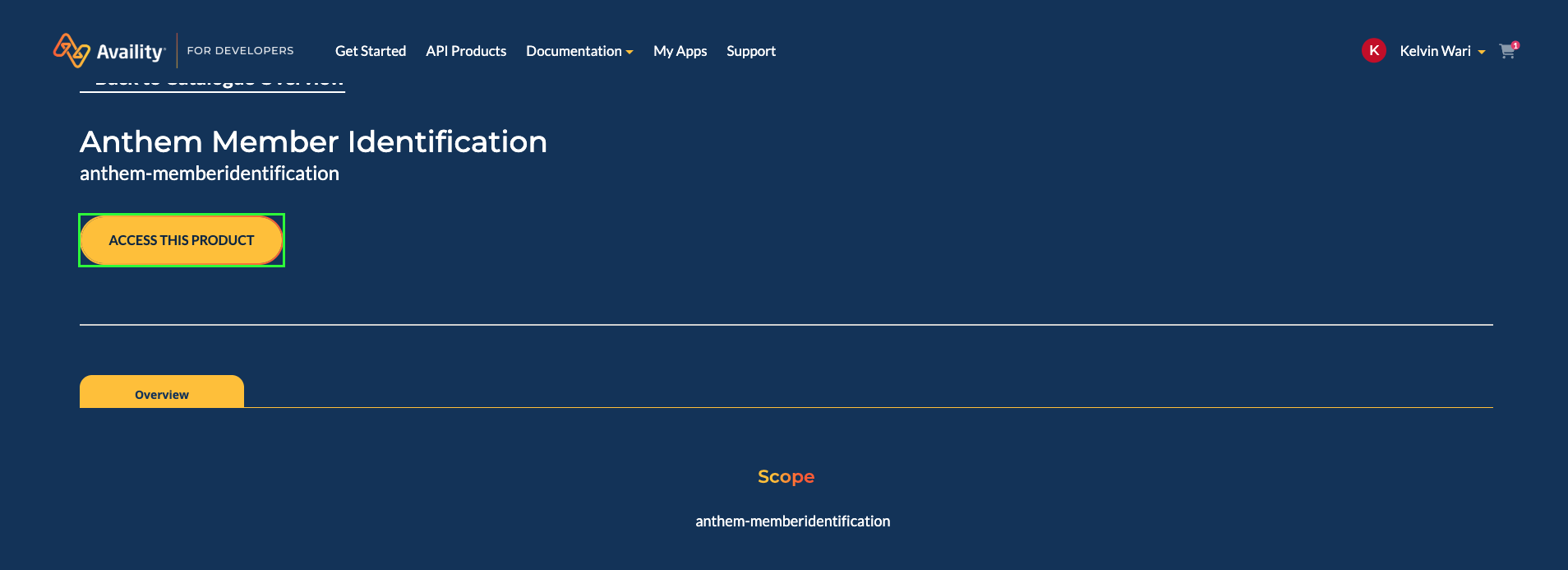 1. Select Access this Product to view available subscription plans for the selected API product. Subscription Plans: