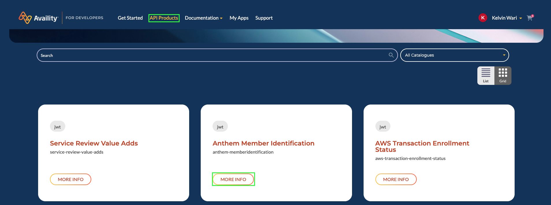 2. Select More Info to learn more about the accessible APIs in an available API product.