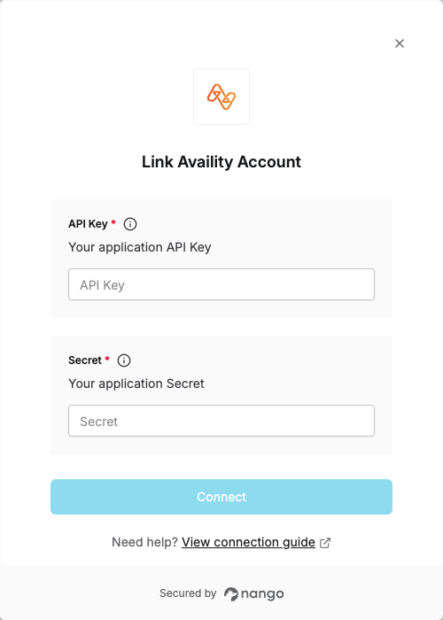 2. Secret - The secret key from your approved Availity application.