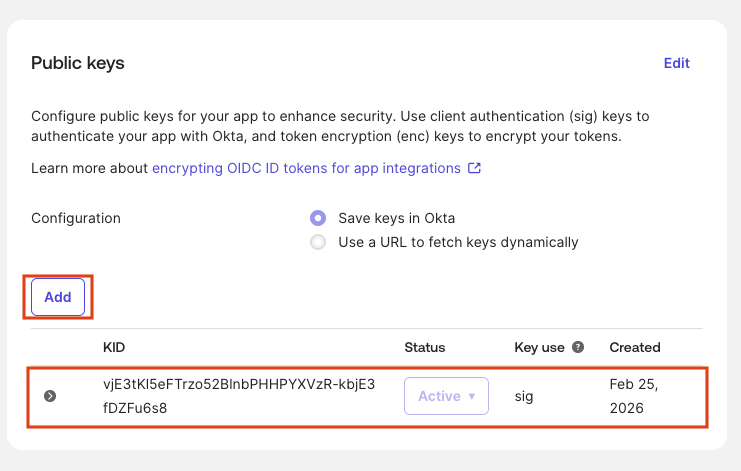 Register the public JWK in Okta: