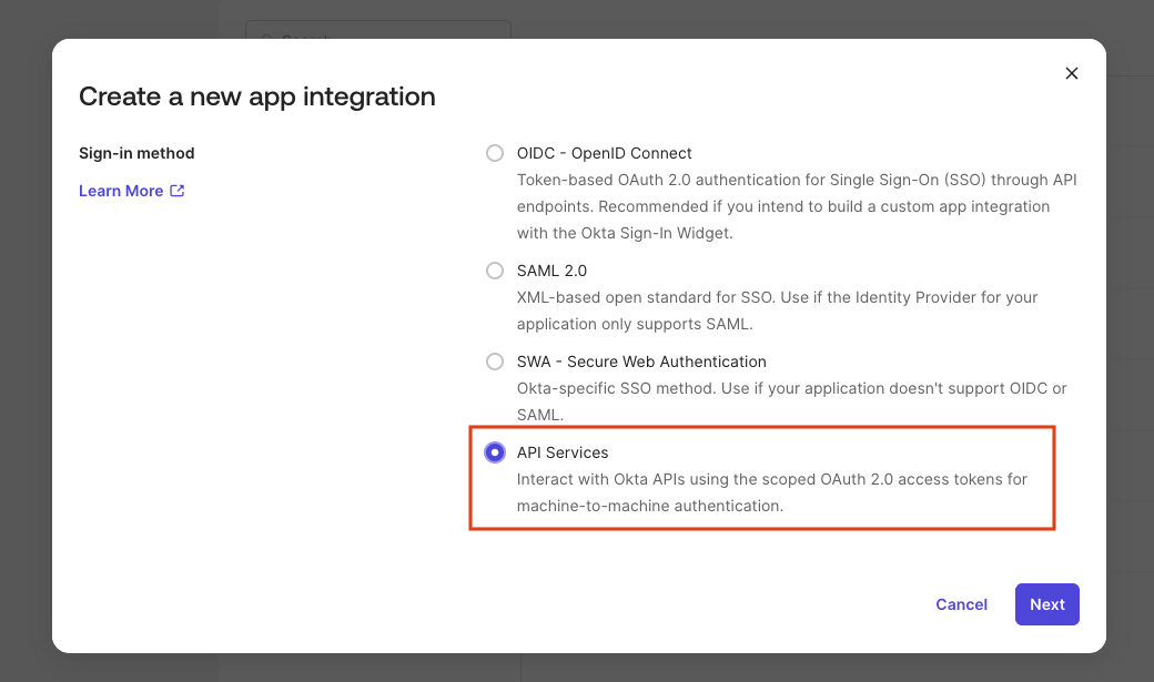 Step 1: Creating your Okta API Services application