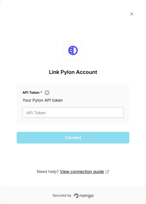 1. API Token - A key that grants Nango permission to interact with Pylon’s APIs resources and services.