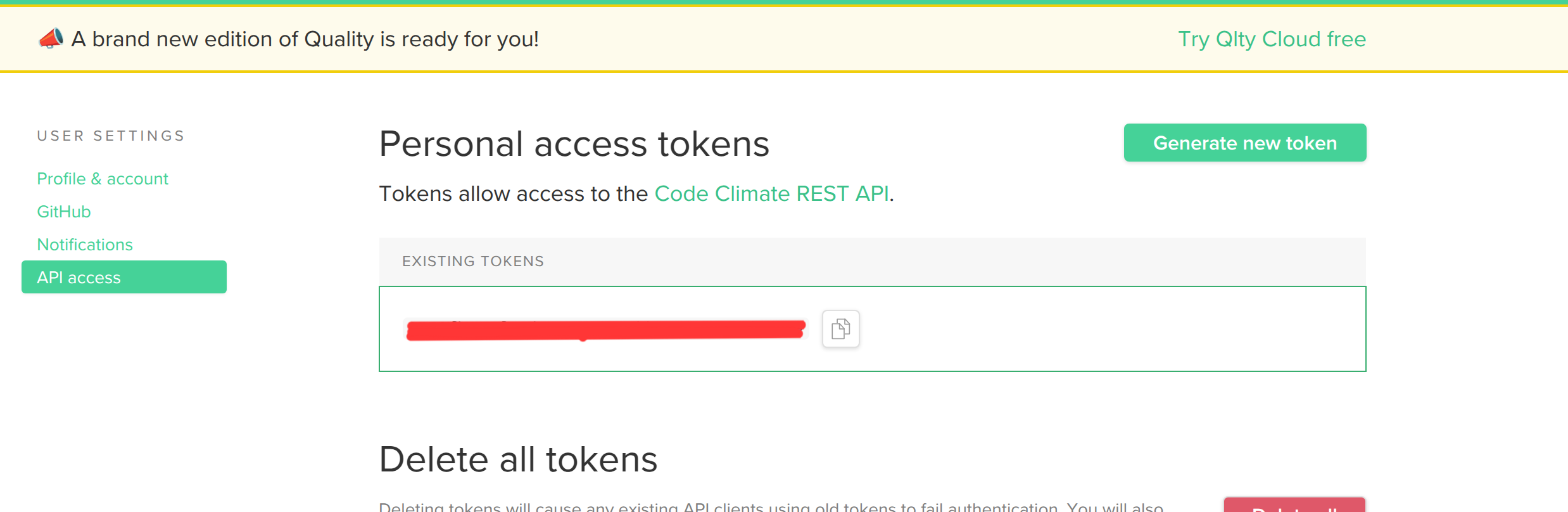 - The generated token will be displayed on the screen. Copy and store it securely, as it will not be visible again after you leave the page.