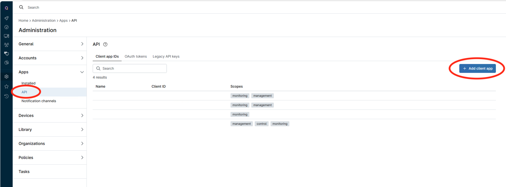 https://app.ninjarmm.com. - Navigate to Administration > Apps > API.
