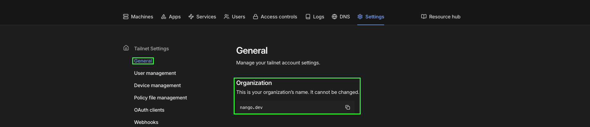 To authenticate with Tailscale (API Key), you need:- Organization Name - The unique name for your organization.